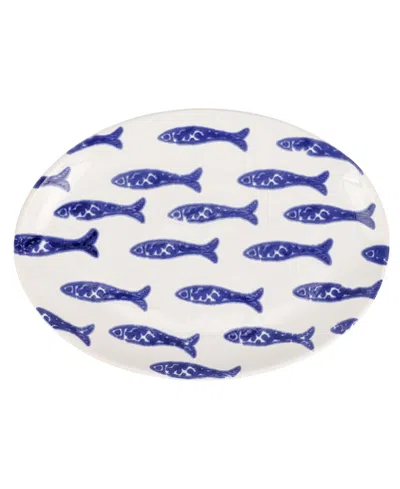 Santorini Fish Small Oval Platter In Blue