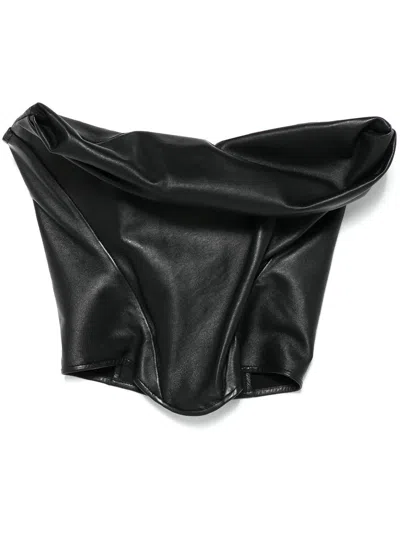 Draped Leather Corset In Black