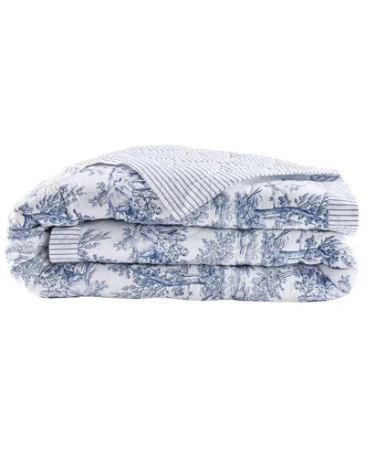 Anne De Solène Organic Cotton Percale 200 Thread Count Galante Coverlet In Blue