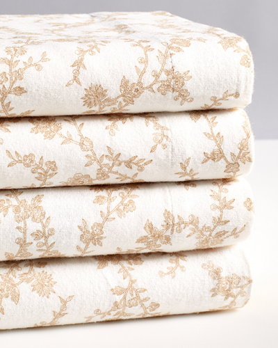 Chelsie Vine Cotton Flannel Sheet Set In Grey
