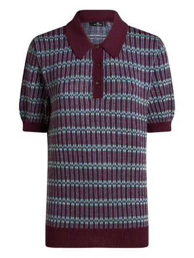 Wool-blend Jacquard Polo Shirt In Burgundy