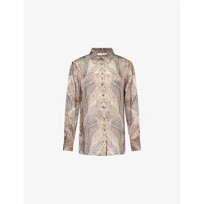 Womens Brown Casia Oversized Stripe-print Crepe Shirt