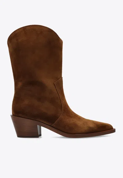 Western Suede Ankle Boots In Brown