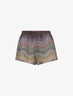 Womens Multi Dark Miss P Elasticated Sequin Shorts In Green