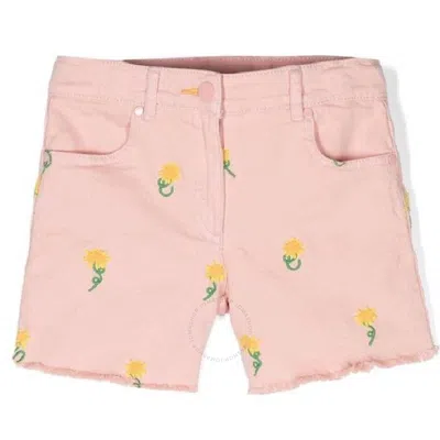Girls Denim Shorts With Floral Embroidery In Red