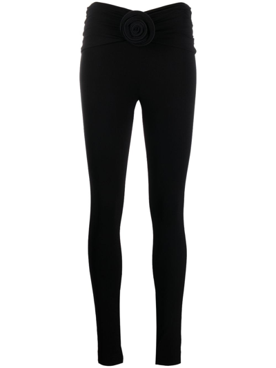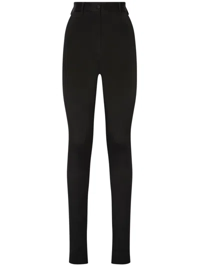 High-waisted Leather Skinny Pants With Decorative Buttons In Black