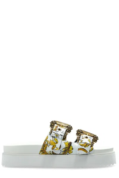White & Gold Outline Barocco Arizona Sandals In Eg03 White/gold