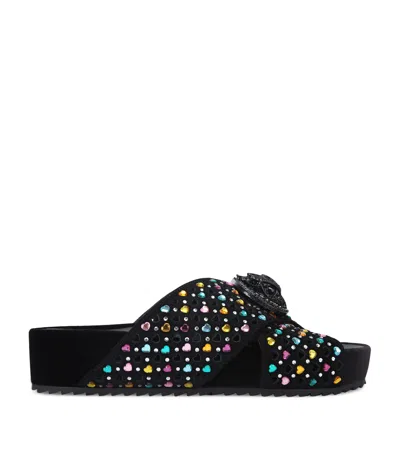 Womens Black Meena Eagle-embellished Faux-leather Flat Sandals