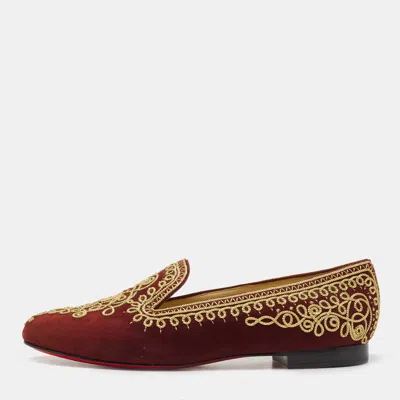 Pre-owned Burgundy Embroidered Suede Mamounia Smoking Slippers Size 40.5