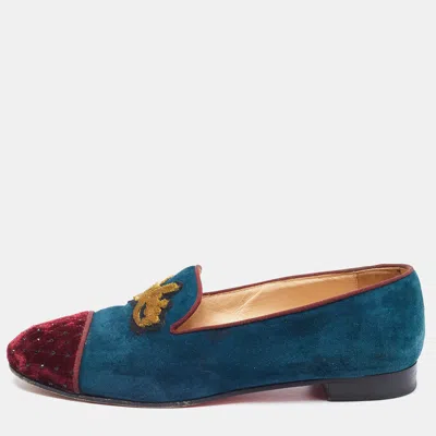 Pre-owned Two Tone Suede And Velvet I Love My Loubies Smoking Slippers Size 39 In Green