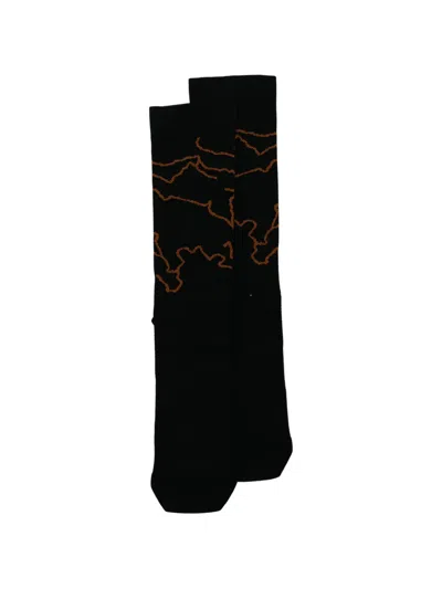 Knee-high Stretch Cotton Socks With Check Pattern In Blue