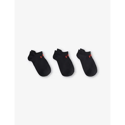 Womens Workout Lightweight Pack Of Three Organic-cotton Blend Trainer Socks In Black B