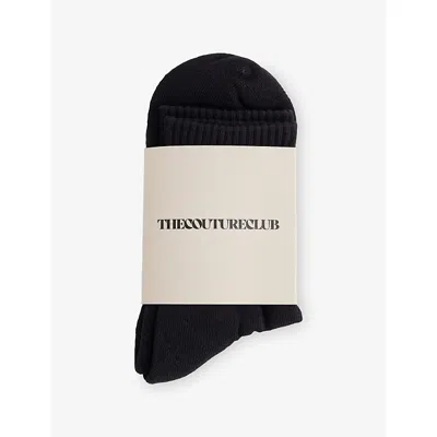Womens Black Embroidered Logo-patch Ribbed Stretch-cotton Socks