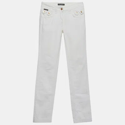 Pre-owned White Denim Straight Fit Jeans S/waist 27"