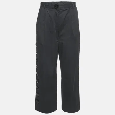 Pre-owned Black Cotton Button Detail Straight Leg Trousers S