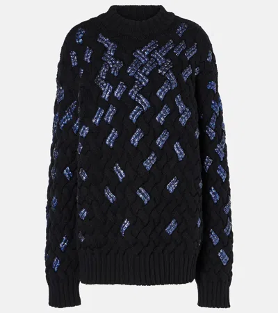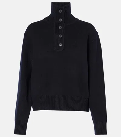 Printed Wool And Cotton Polo Sweater In Dark Blue