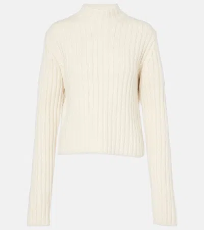 Paillette Striped Rib Crewneck Sweater In White And Beige