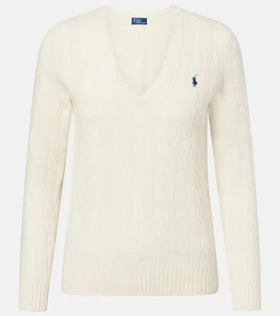 Ralph Lauren Cable-knit Cotton V-neck Sweater In Blue