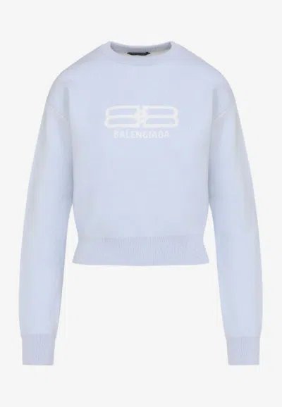 Logo-jacquard Cropped Sweater In Wool Blend In Blue