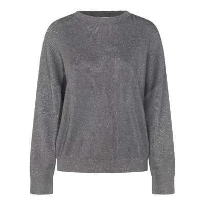Metallic Ribbed Crewneck Knitwear With Long Sleeves In Gray