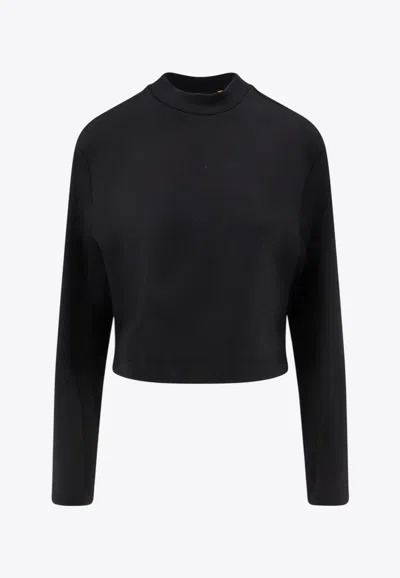 Wool Sweater Cropped Long Sleeves Crew Neck In Brown