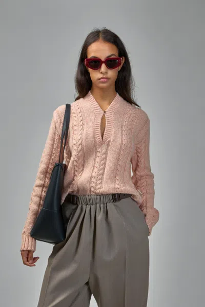 Beige Turtleneck Sweater With Braided Knit Detail In Wool And Cashmere Blend Woman In Brown