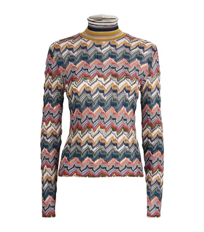 Crew Neck Ribbed Wool Blend Sweater With Tartan Motif In Sherbet Check