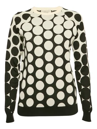 Pre-owned Black/white Polka Dot Jacquard Knit Wool Sweater Xs