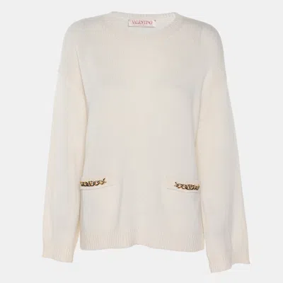 Pre-owned Cream Cashmere Round Neck Sweater S In White