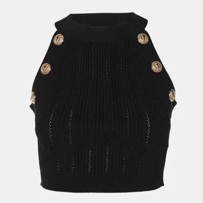 Pre-owned Black Cotton Knit & Satin Trim Tank Top M