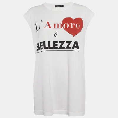 Pre-owned White Cotton L'amore E Bellezza Printed Tank Top S