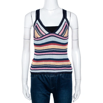 Pre-owned Multicolor Striped Rib Knit V Neck Tank Top M