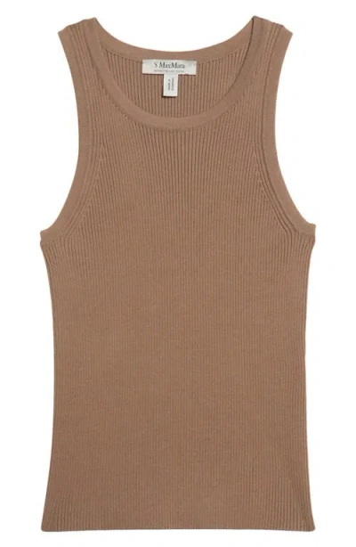 Fitted Ribbed Scoop Neck Tank Top In Brown