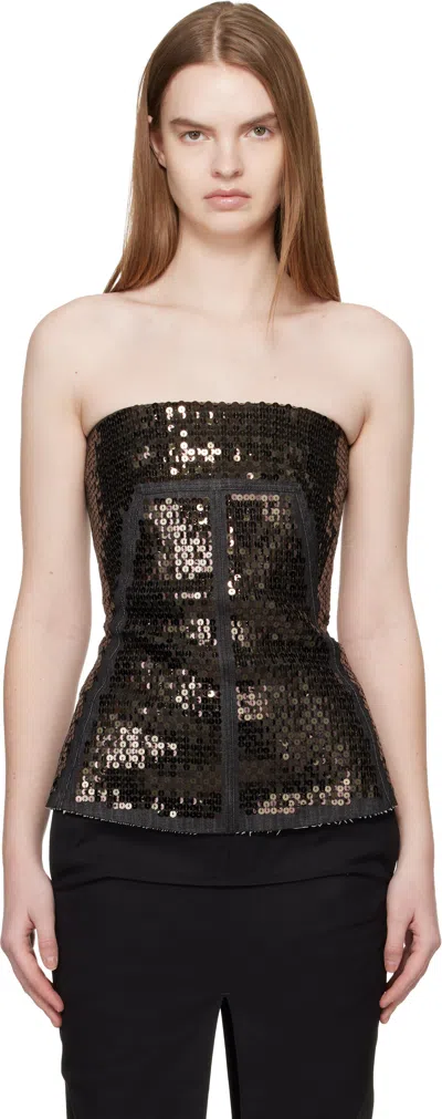 Denim Bustier Top With Sequins Tops Black In Multi