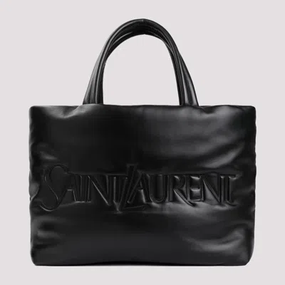 Laurent Logo Plaque Tote Bag In Desert Dust/brick