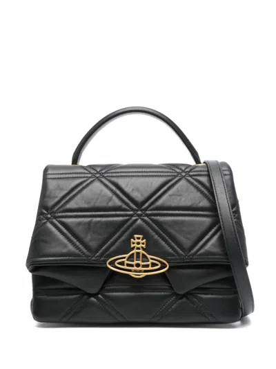 Quilted Top Handle Tote Bag In Black