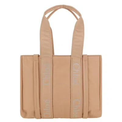 Chloe Woody Logo Medium Tote Bag In Brown