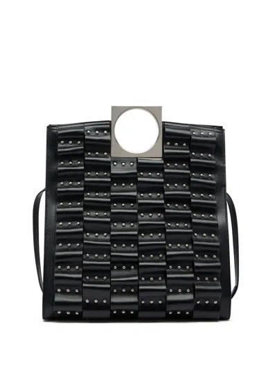 Box Weave Basket Tote In Black Leather