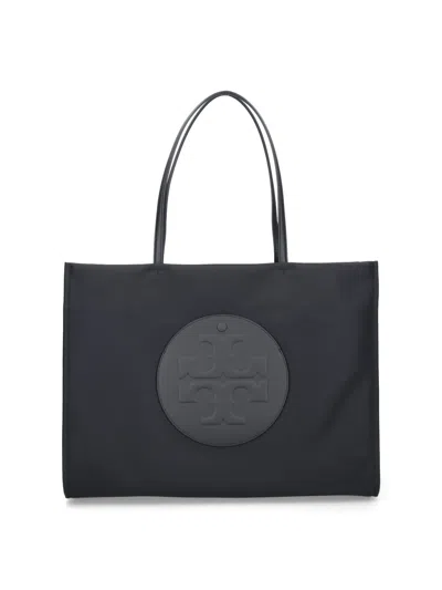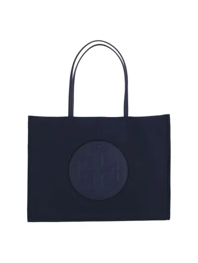 Ella Blue Large Tote Bag With Tonal Logo Detail In Tech Fabric Woman