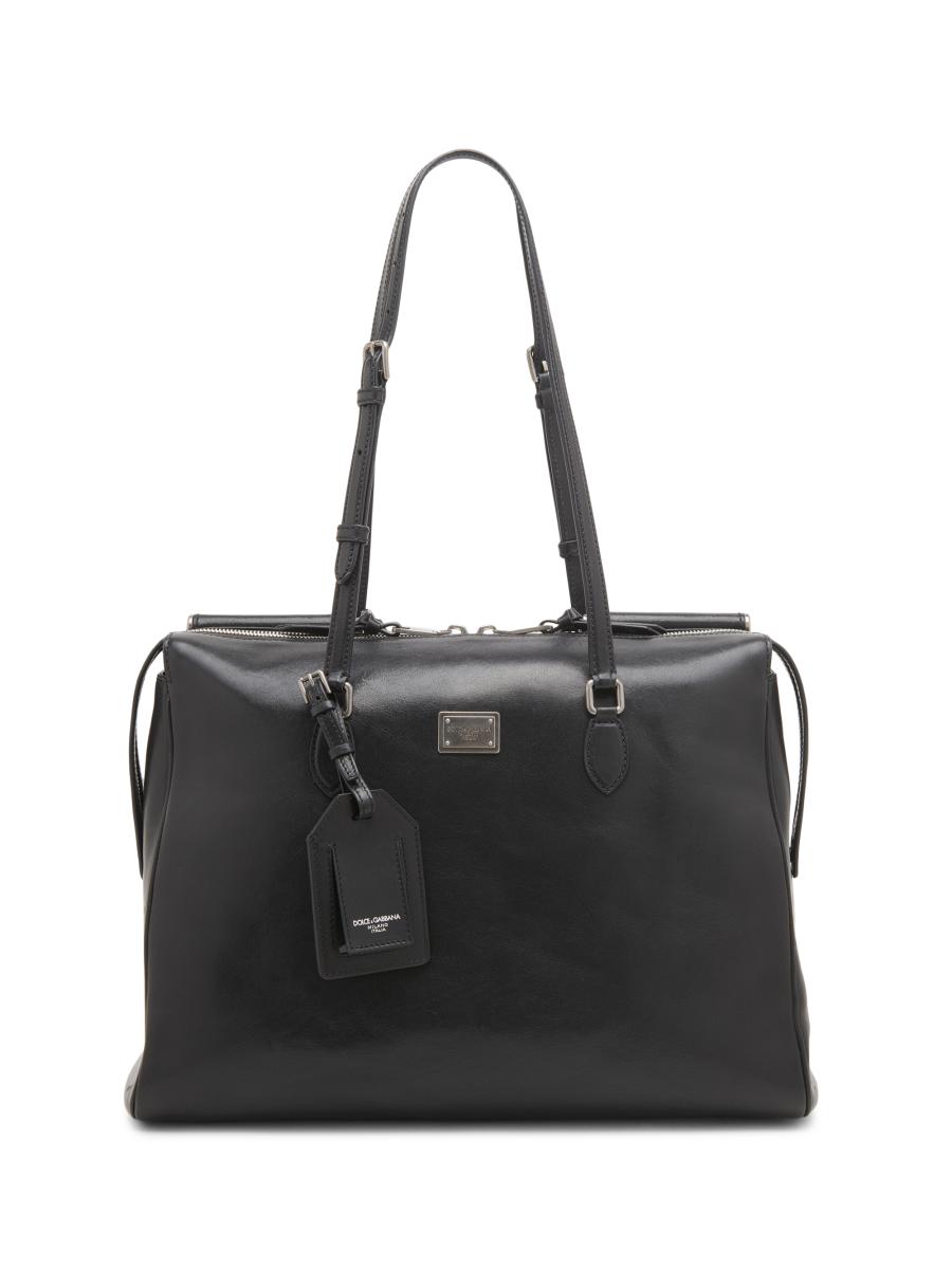 Bindle Medium Leather Tote Bag In Black Ans