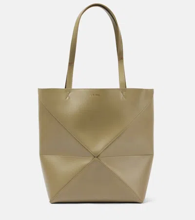 Puzzle Fold Medium Leather Tote In Green