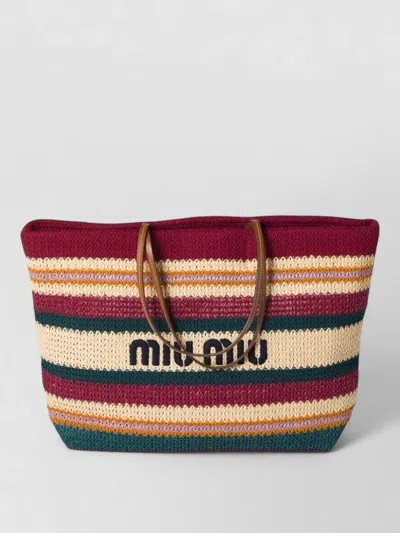 Raffia Effect Tote Bag Dual Handles Striped In Pink