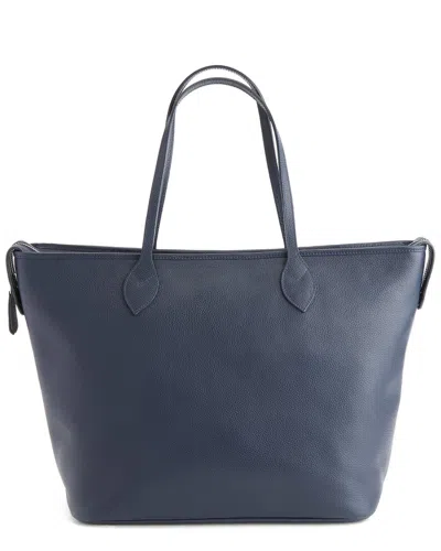 Pebble Grain Leather Wide Tote In Navy Blue