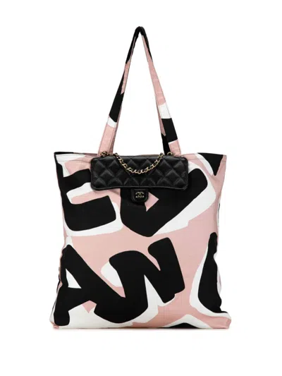 Pre-owned Caviar Fabric Quilted Foldable Tote With Chain Black Multicolor In Default Title