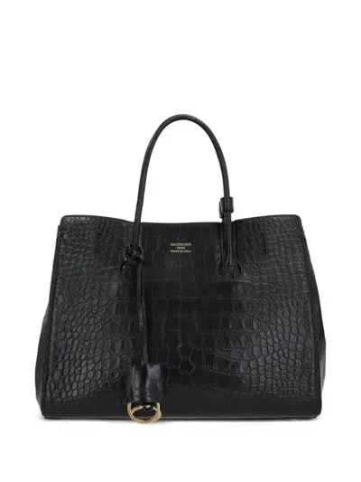 Hampton Carry All Tote Bag In Crocodile Effect Leather In Black