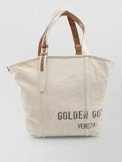 Canvas Beach Bag Structured Base Dual Handles In Neutral