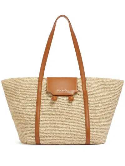 Medium Natural Raffia-effect Trunkaroo Beach Bag In Neutral
