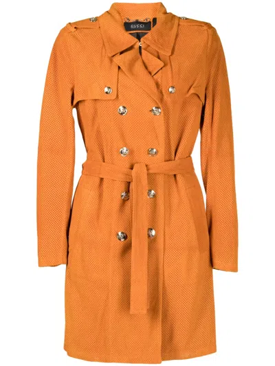 Pre-owned Double-breasted Belted Trench Coat In Neutral