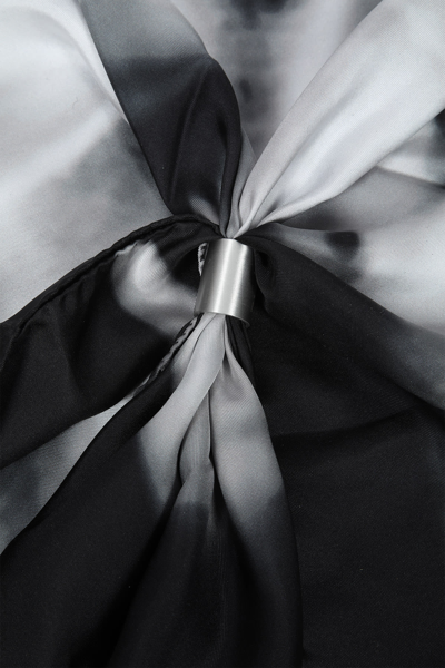 1017 9sm Printed Foulard Top Printed Silk Foulard With Logo In Nero/bianco