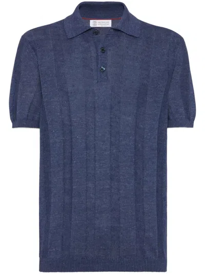 Vin Ribbed-knit Polo Shirt In Brown